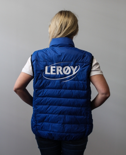Blå boblevest, 100% Nylon, tynn og komfortabel. Finnes i størrelsene S,M og L.