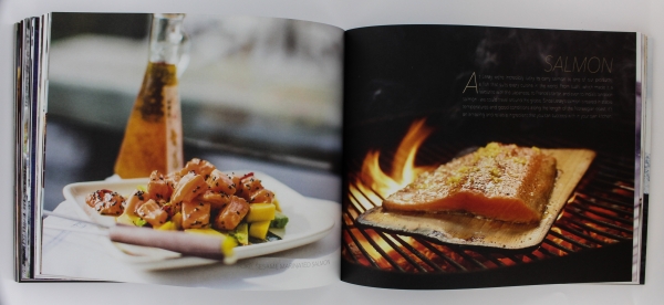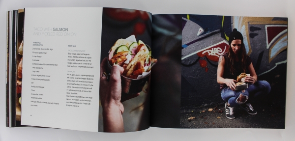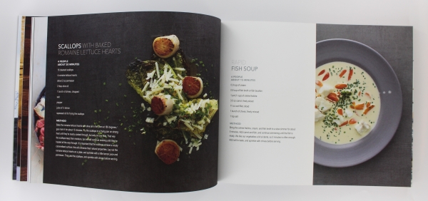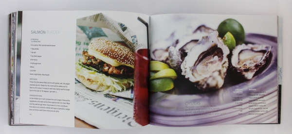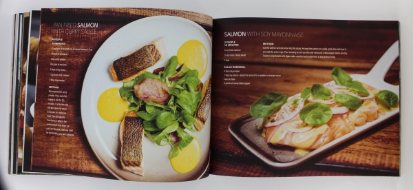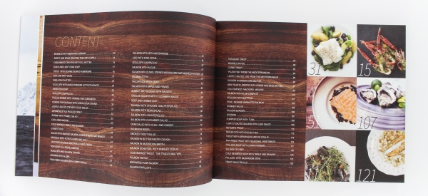 The cookbook, Seafood for every table is presented in a matt foil and contains recipies created by Fredrik Hald, with different types of seafood dishes. The book is butifully illustrated with lovely pictures and design by Marianne Stokke. It includes about 127 pages with easy and quick dishes to make.