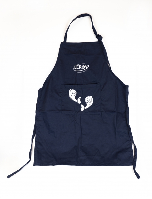 Barneforkle med gøy brodering av to fisker. Lengde 78 cm, bredde rundt bryst 61 cm.