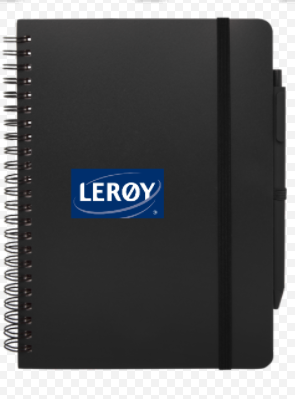 Notatblokken har avrundede hjørner, elastisk lukking og penneløkke. Kulepennen med svart blekk er også laget av havbundet resirkulert plast. Skrivelengde: 1000 meter. Spisstørrelse: 1,0 mm. FSC sertifisert papir, Resirkulert plast