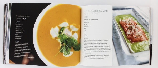 The cookbook, Seafood for every table is presented in a matt foil and contains recipies created by Fredrik Hald, with different types of seafood dishes. The book is butifully illustrated with lovely pictures and design by Marianne Stokke. It includes about 127 pages with easy and quick dishes to make.