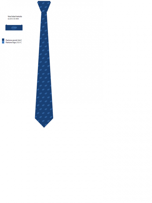 Spesial-laget slips i 100% silke. Minsteantall for produksjon er 100 stk. Logo er brodert i stoffet, og slipset blir levert med vevet label på baksiden. Ca 4-5 ukers leveringstid.